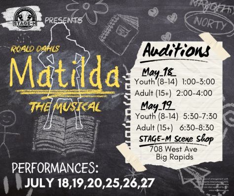 Auditions for “Matilda: The Musical” will be Sunday, May 18, and Monday, May 19.